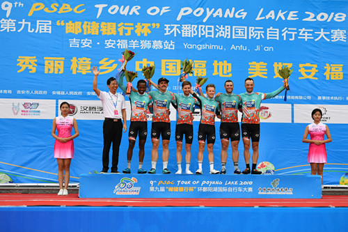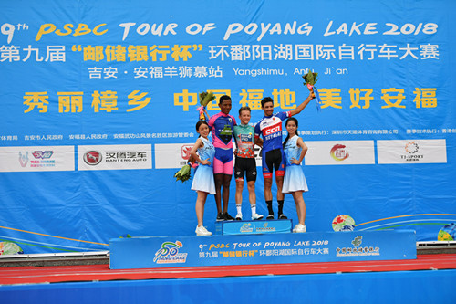 本賽段賽道全程16公里,是本屆環(huán)鄱賽設(shè)置的最短賽程。來自德國(guó)助力車隊(duì)的選手阿德內(nèi)?威廉簡(jiǎn)僅用35分38秒完成比賽,奪得了本賽段的冠軍。昨日獲得爬坡王(圓點(diǎn)冠軍衫)的厄立特里亞車隊(duì)選手耶馬內(nèi)?謝加伊表現(xiàn)勇猛獲得亞軍并且繼續(xù)保有圓點(diǎn)冠軍衫。塞爾維亞CCN梅達(dá)勒車隊(duì)選手馬爾科?帕夫利察獲得季軍。荷蘭猴城樂園車隊(duì)選手馬爾滕?德容以第八名完成比賽的成績(jī)繼續(xù)保有個(gè)人總成績(jī)(藍(lán)冠軍衫)。最佳大中華(粉紅冠軍衫)和沖刺王(橙冠軍衫)獲得者均為中國(guó)熊貓CCN車隊(duì)選手彭源堂,這也是他連續(xù)三站同時(shí)穿上兩件領(lǐng)騎衫。